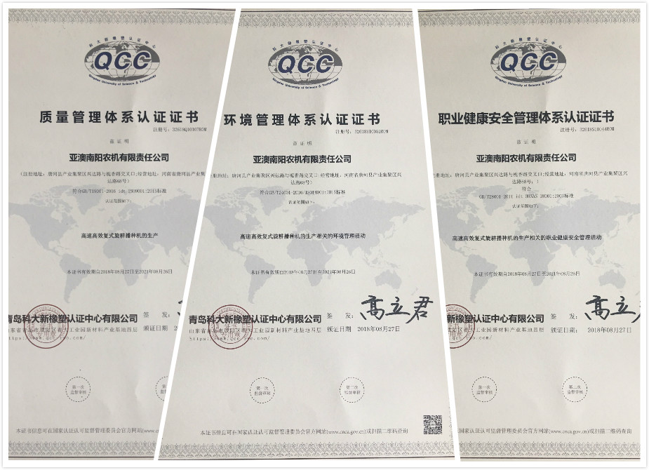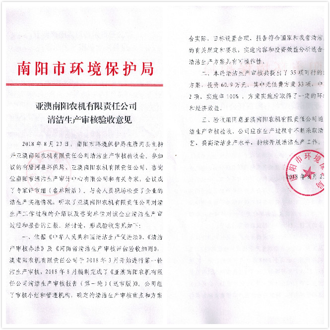亞澳農機通過三體系認證及清潔生產(chǎn)