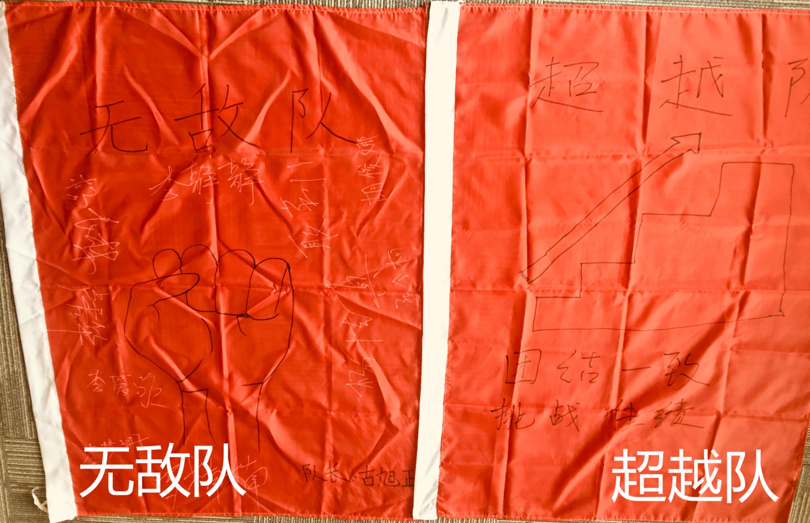 士氣展示,每組在隊(duì)長的帶領(lǐng)下,繪制隊(duì)旗隊(duì)呼,并列隊(duì)進(jìn)行展示,在展示的過程中,在每一個隊(duì)員的配合下,整齊劃一,士氣滿滿。