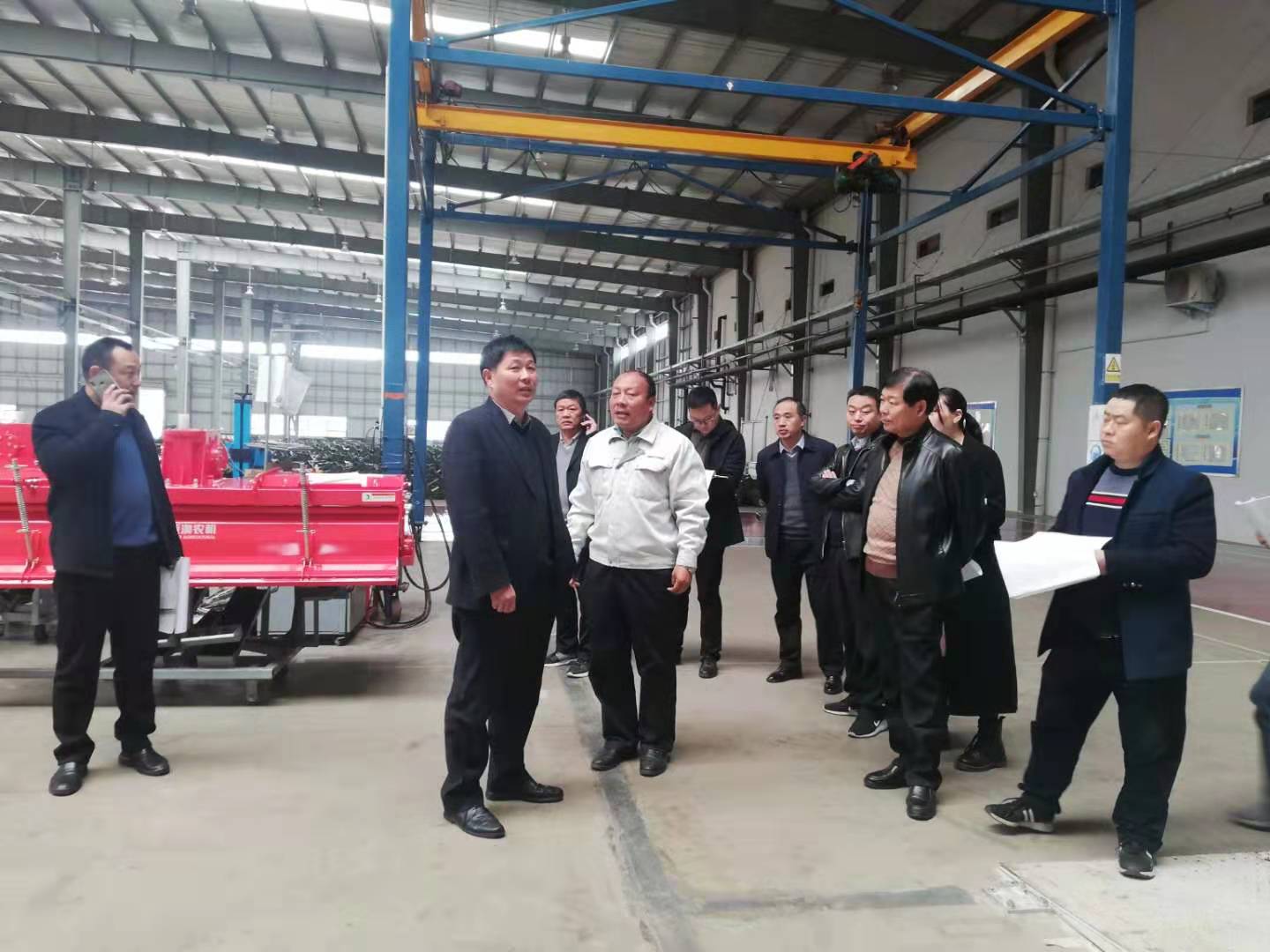 20191119日上午,南陽市市委辦副主任趙玉云攜市發(fā)改委副調(diào)研員馬秋柏等一行在唐河縣工信局領(lǐng)導的陪同下蒞臨亞澳農(nóng)機視察亞大型復式旋耕機智能制造新模式項目發(fā)展建設情況。