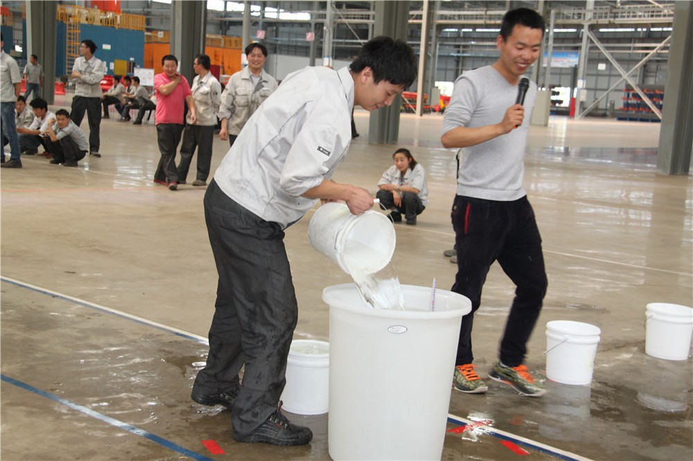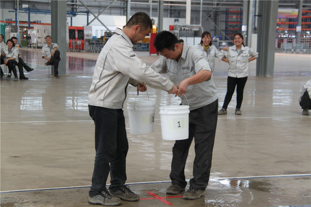 下午13:30在運動場出現(xiàn)了擺放有序的水桶,這是我們的第二項活動:精益運輸大接力,取水點的距離分別大于等于10米,每個桶分別裝滿10L水,每組隊員是五個人,要在120秒內(nèi)完成大桶水量的收集,超過120秒的隊員淘汰出局,在規(guī)定的時間內(nèi),水量收集多者獲勝,抽簽決定出場順序,這項活動是讓員工明白精益化生產(chǎn)體系的精髓所在之處;減少過程浪費,實現(xiàn)低成本的快速交付,滿足客戶的同時,做到細節(jié)控制,提升產(chǎn)品使用價值,提升公司盈利空間。比賽開始了只見隊員雙手提起20L的水往下一站的隊友那里送,中間會有灑水會很累,但是每個人都為了自己隊伍的榮譽拼盡全力向終點奔去,旁邊的隊友為他們加油、吶喊,最終自焊獲得第一名。